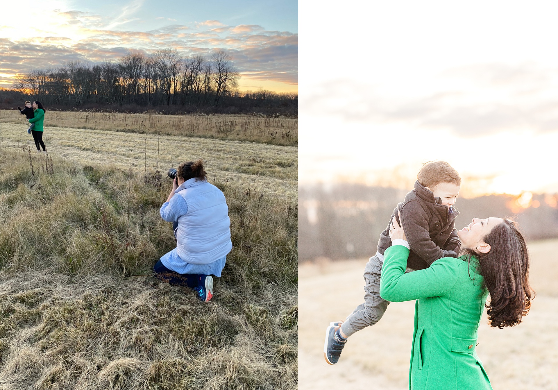 As the year is coming to an end, I am thinking about how thankful I am for all the families I photographed this year. I feel so lucky to get to step into your world for a moment and capture your special moments. Thank you for entrusting me with your family‘s photographs this year. I thought a fun end of year blog would be putting together all the behind the scenes photos you took for me and pairing them with the photos I took of you :). If you took a behind the scene photo from your session and haven’t sent it to me or don’t see it here, please email or message it to me and I will add it!