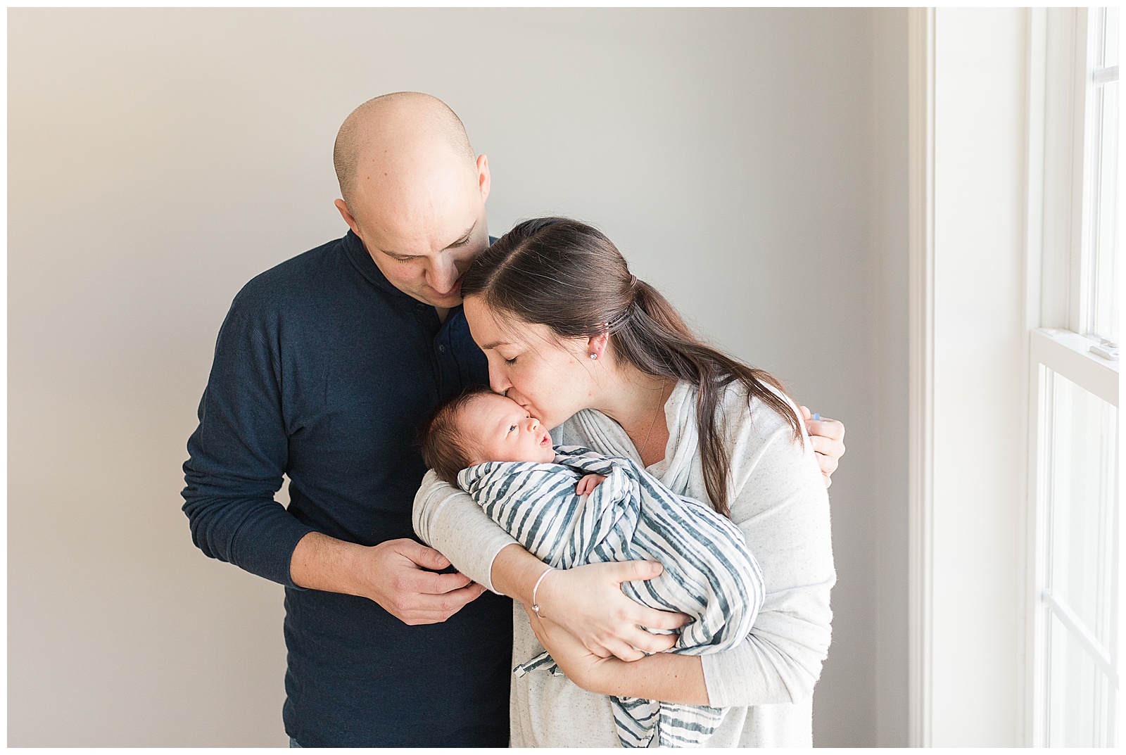Mom and Dad started the photo session commenting on how they are not good at having their picture taken.  My response to this is always that as long as you are good at cuddling with your baby then you will be great!  Most people feel somewhat awkward having their picture taken,( I know I do :)). Once we get about 20 minutes into the session I usually see people relax and get more comfortable.  My goal is to capture moments that will help you remember this season in your families lives. All you need to do is be your selves and cuddle and I will do the rest!